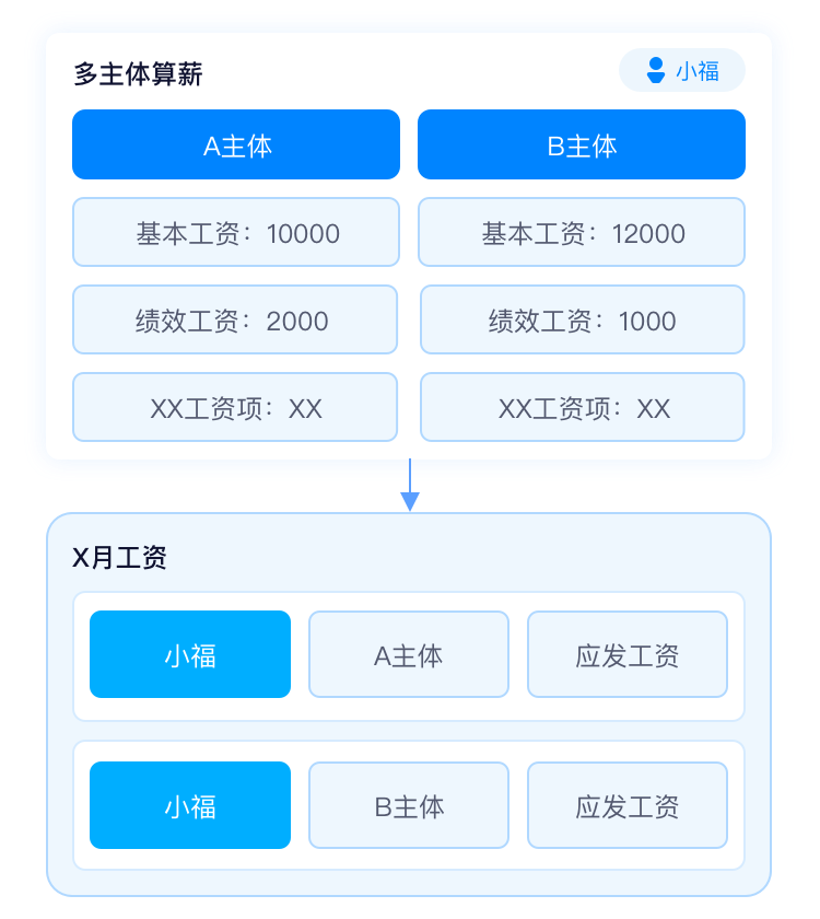 按主体分别管理员工的薪酬档案,分别计算员工在不同主体下的薪酬