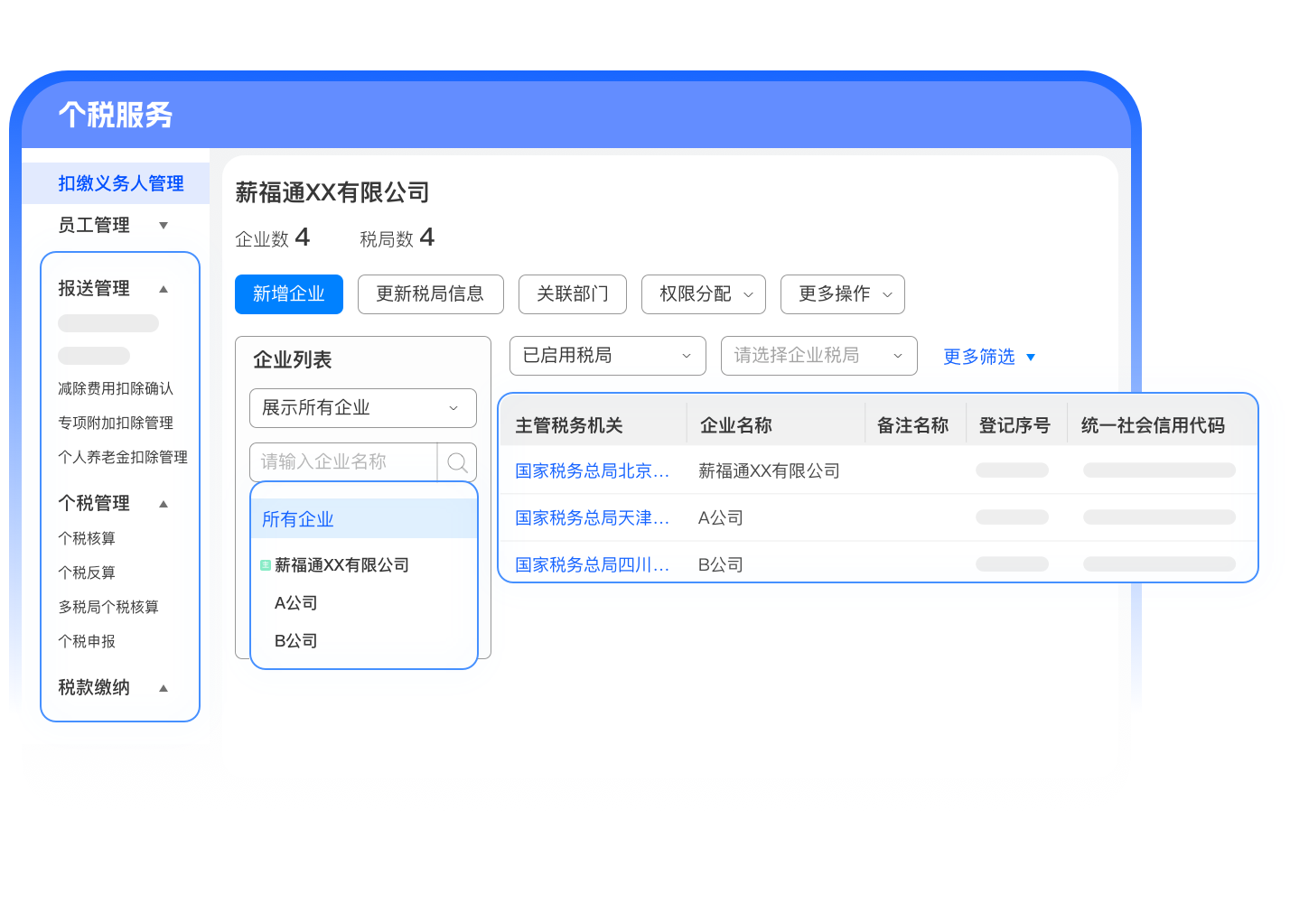 多税局统一管理,自动同步员工信息至各税局