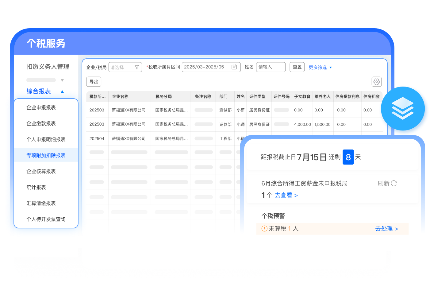 自动同步税局专项附加扣除数据、减除费用扣除信息、个人养老金数据等,提升算税效率与准确性