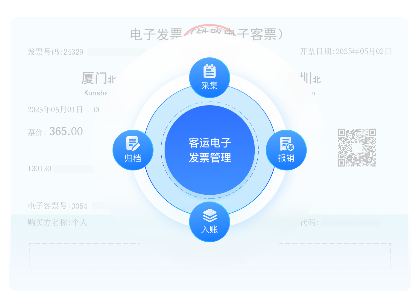 铁路电子发票从收集、报销、入账、归档全流程管理闭环,提升财务发票管理工作效率和准确性