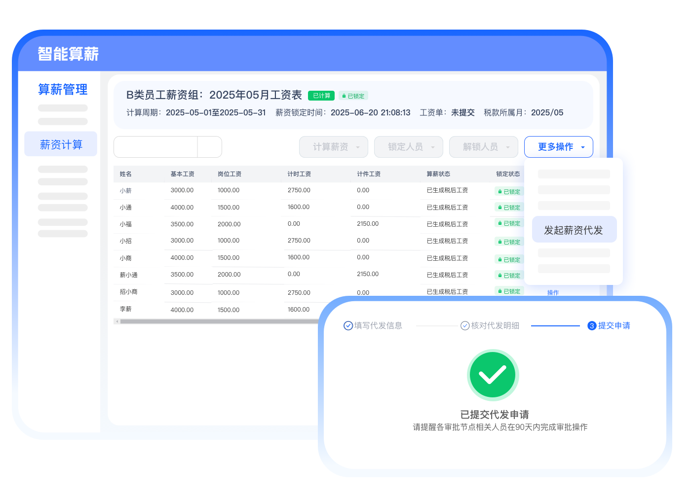 算薪结果一键同步至薪资代发及工资单