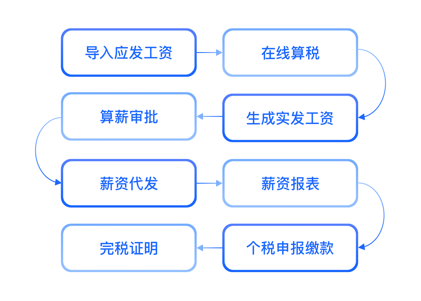 算薪数据直连发薪,个税在线申报缴款生成企业完税证明,可直接下载留存,自定义生成汇总工资报表,可在线下载